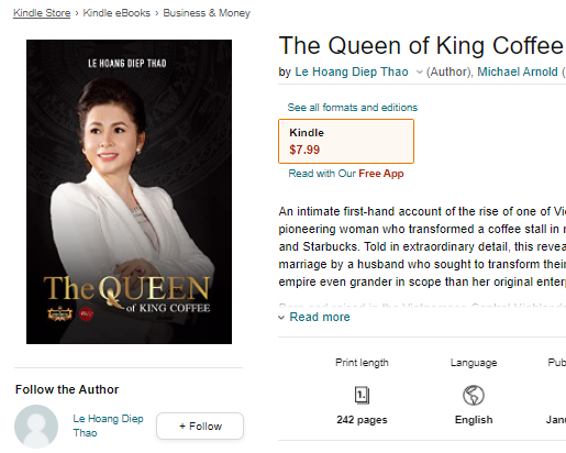 Recently, on her personal Facebook page, Ms. Le Hoang Diep Thao, CEO of King Coffee coffee brand has just announced the launch of an autobiography in English called The Queen of King Coffee on December 29 at the Dubai event. Expo 2020.